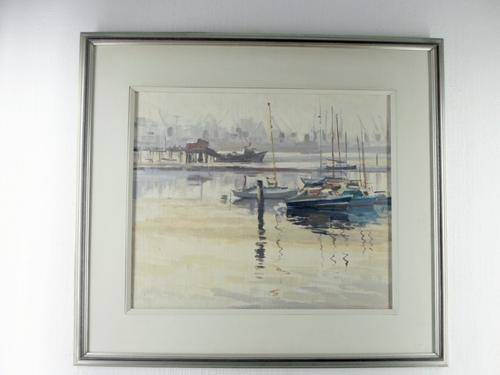 A beautiful oil painting of boats in the harbor. Rich in detail and beautifully executed. The painting measures 59cm x 49cm and the frame measures 85cm x 76cm. Own this beauty at a giveaway price, bid now!!