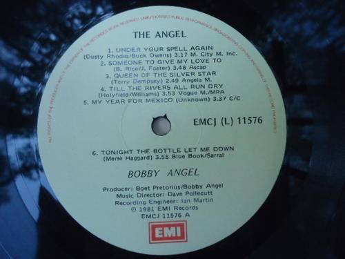 On offer is this BOBBY ANGEL "THE ANGEL" 1981 EMI STEREO LP SUPPLIED IN A PLASTIC COVER IN EXCELLENT CONDITION WITH THE VINYL SHOWING SLIGHT HAIRLINE MARKS AND THIS COVER SHOWS A STICKER IN THE TOP LEFT HAND TOP CORNER.