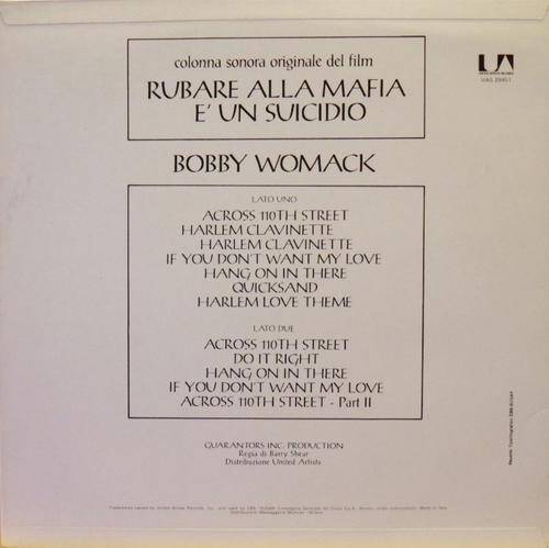 1973 Italy UNITED ARTISTS pressing, release number UAS 29451, of Soundtrack album by BOBBY WOMACK & PEACE; J.J. JOHNSON AND HIS ORCHESTRA: Colonna sonora originale del film “Rubare alla mafia e' un suicidio” (Across 110th Street). The track details are as shown on the images provided. The record is in a hardly played, near mint condition. The cover is in an excellent condition. |