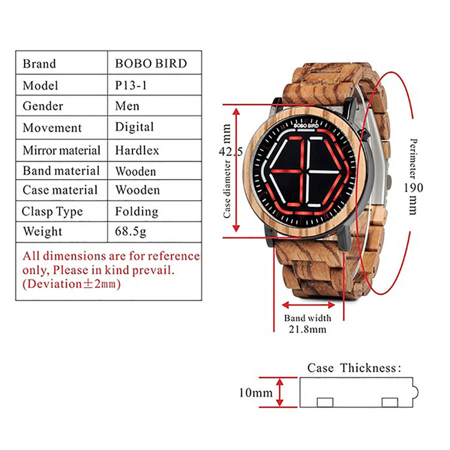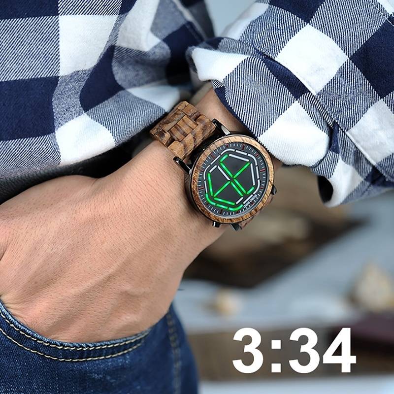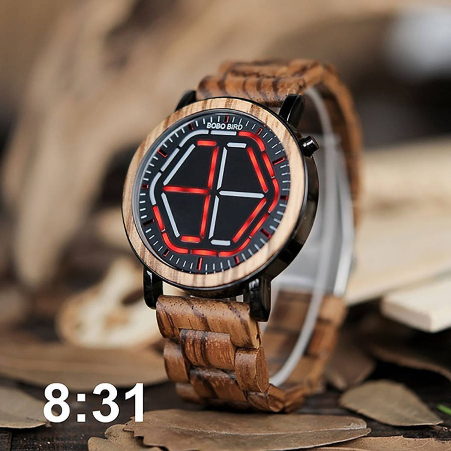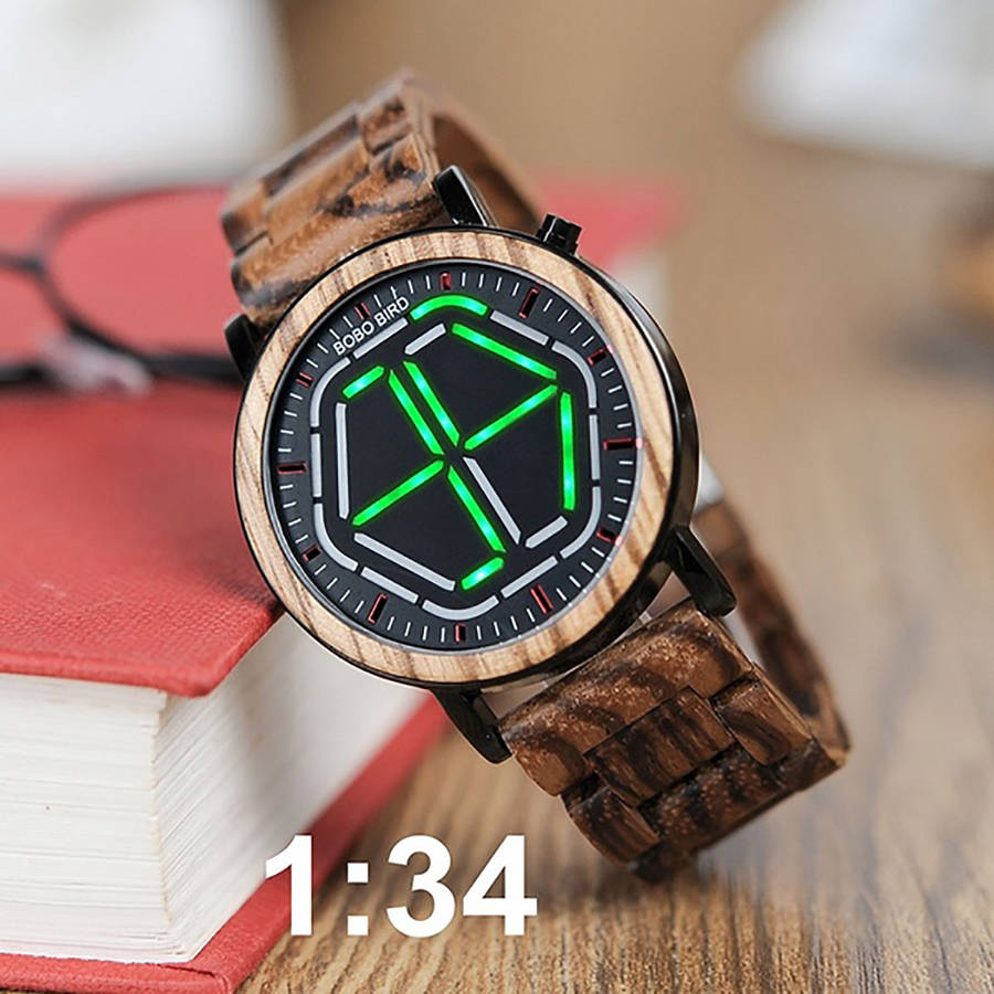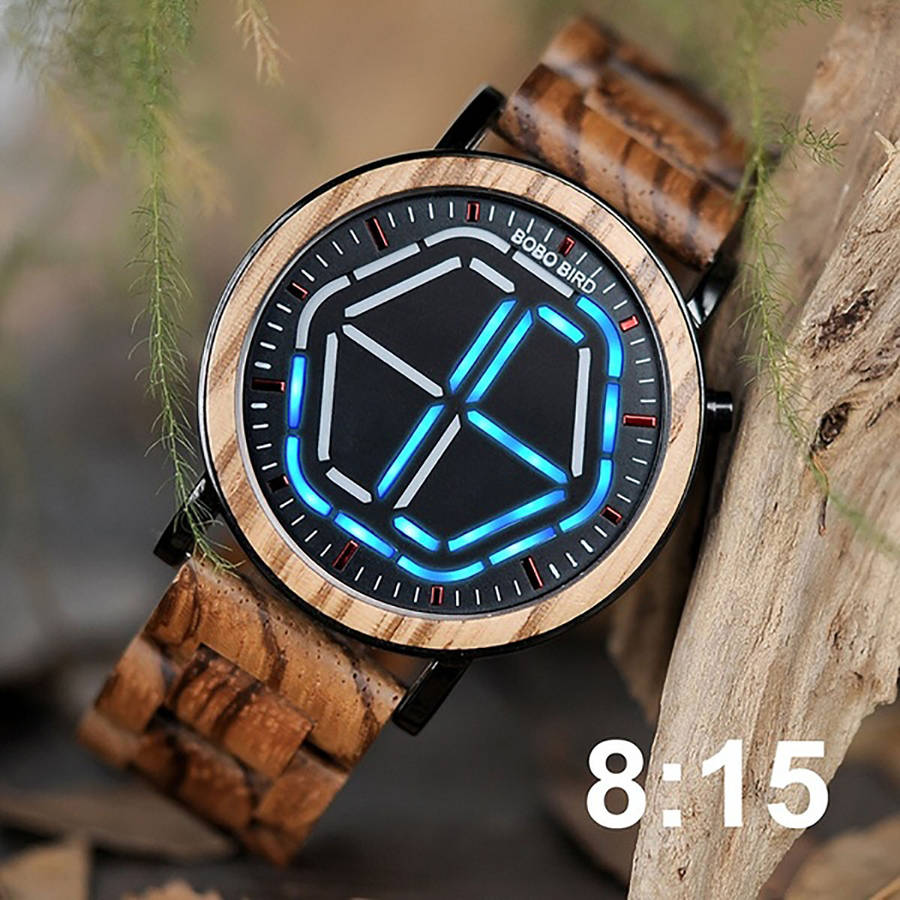 BOBO BIRD Creative Night Vision Wooden Watch Colorful LED Unique Time Display Men Quartz Watch