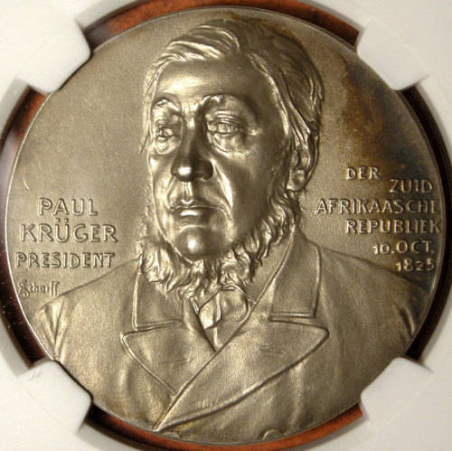 From the Boer War, a Medal of Paul Kruger / Aan De Dappere Strijders. Hern 260. Further information at South African Commemorative Medals.