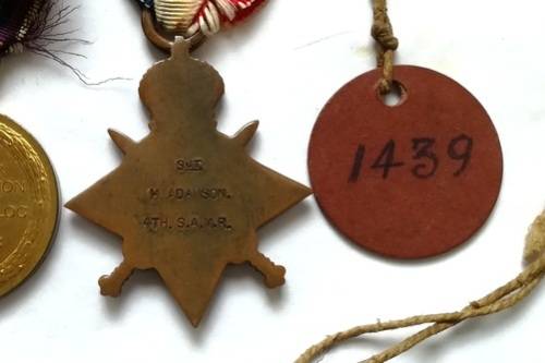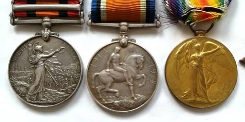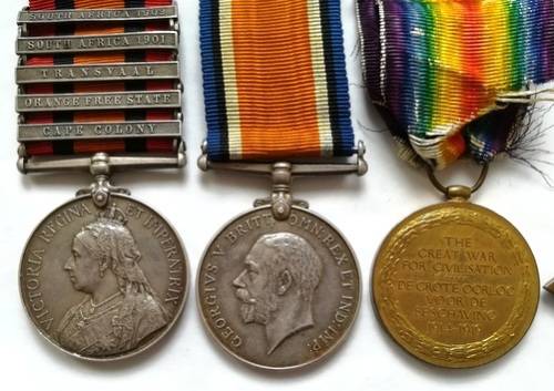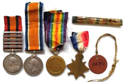 BOER WAR AND WW1 - QSA 5 CLASPS, 1914-1918 MEDAL,GREAT WAR MEDAL+1914 STAR, DOG TAG + MEDAL BAR