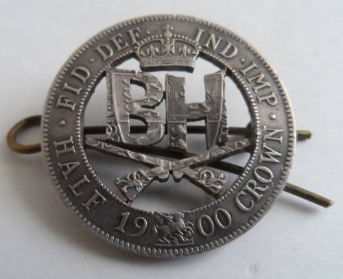 Possible Boer War Era Trench Art, cut-out from a silver 1900 UK half-crown coin. Lugs intact. Border Horse or Brabant's Horse? Could also be possible Boer War Concentration Camp Art, someone's initials?