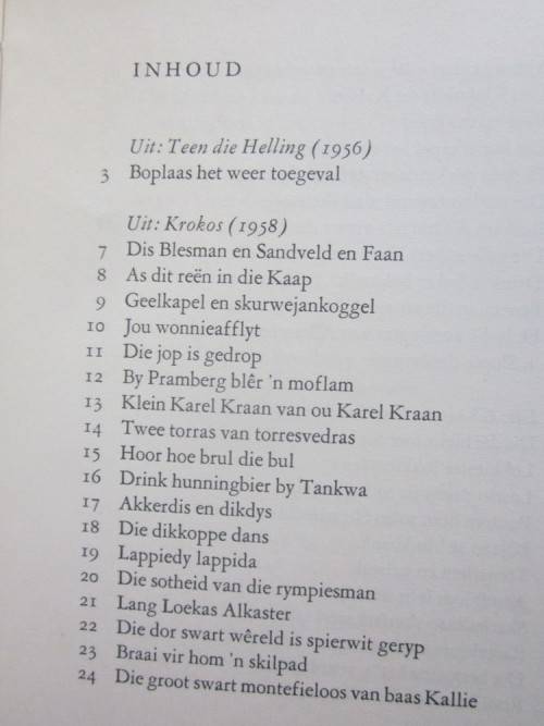 eerste uitgawe 1968 hardeband met stofomslag 133 bladsye, die stofomslag is redelik verweerd- merkies en skeurtjies, die hardeband is goed,een of twee klein vlekkies in boek, die teks is skoon en die bindi ngoed- geen oorsese versending