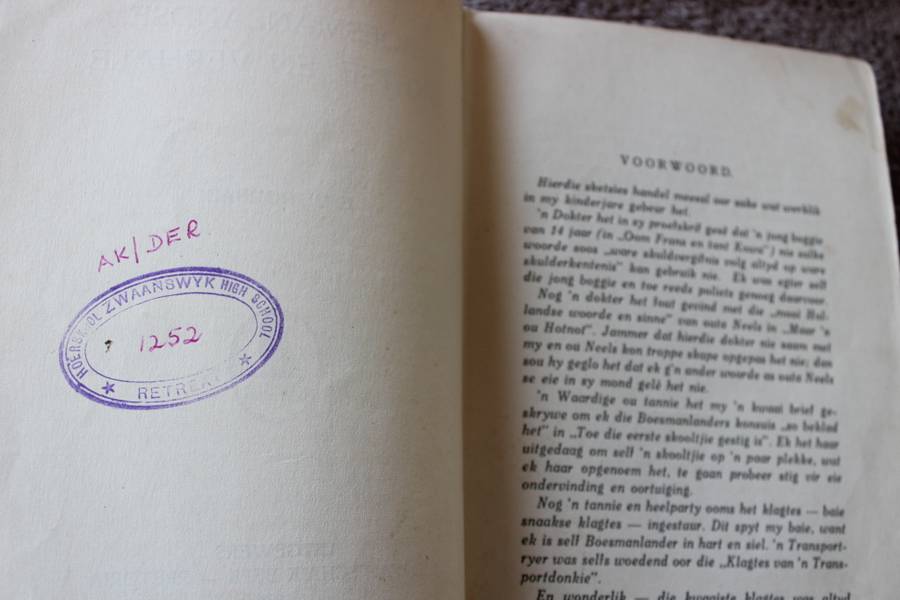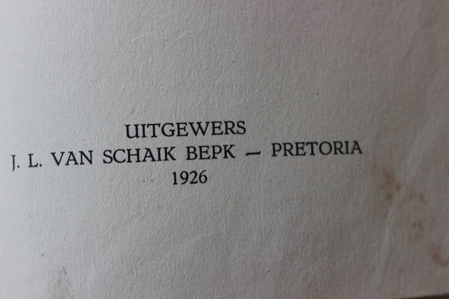 Hardeband. Die boek is professioneel herbind. Uitgegee in 1926 deur J. L. van Schaik met 224 bladsye. Die drukwerk op die voorblad is dof. Buiteblaaie het rakskaafmerke en vlekke. Die hoeke is verweer. 'n Skoolstempel op die binnekant van die titelblad. Paar verbruiningsvlekke binne. 'n Stewiggebinde kopie van bykans 'n 100 jaar! Geen oorsese versending.