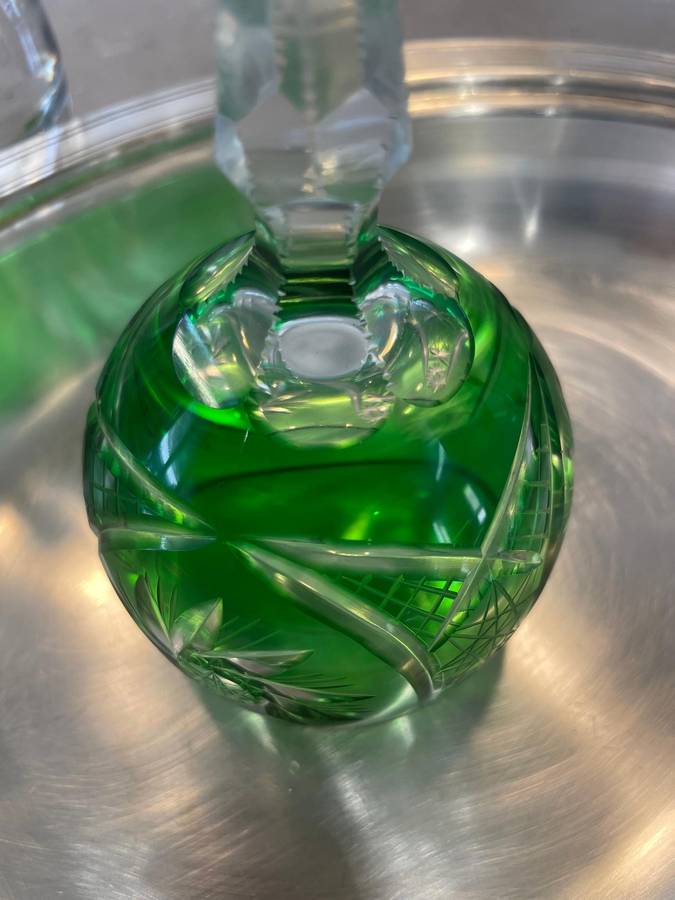 The Emerald Green, Ruby Red and Cobalt Royal Blue glasses has a six-sided faceted stem that has been delicately notched down the cut base. Please note the Purple Amethyst does not have the notched stem. Plain with no detail.