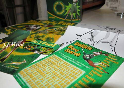 Includes poster, rubber bangle, colouring page, springbok tattoo, stickers, swimming ring, etc  ... all for 1 shipping