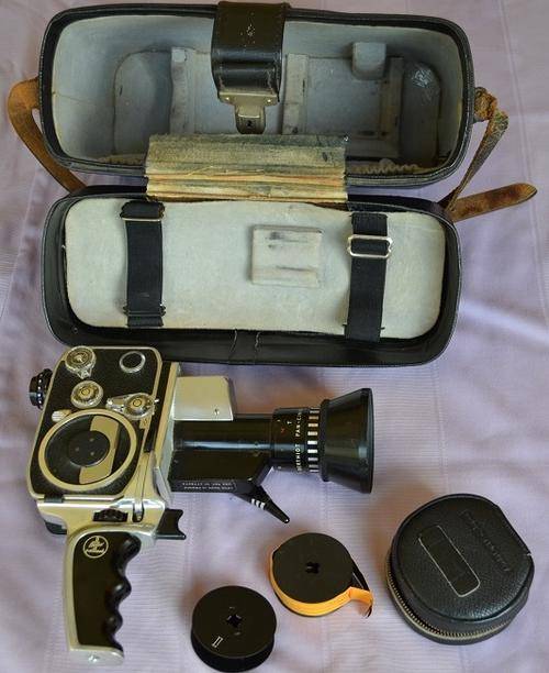 A Bolex P1 in a carry case with a "pistol"-grip and even a roll of film, up for auction.