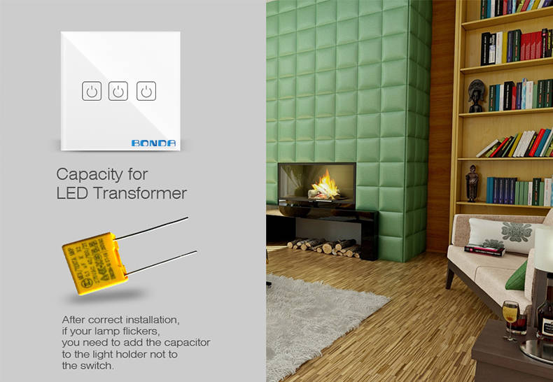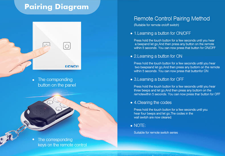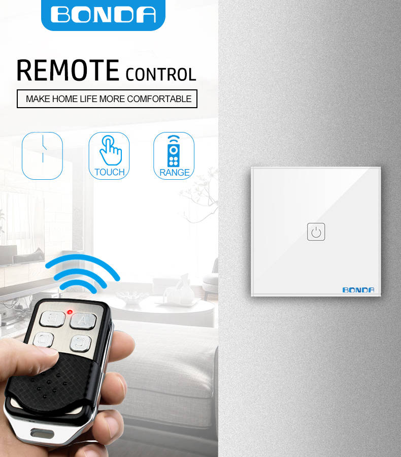 BONDA WIFI 433RF Remote Control Touch Switch 1Way 2Way 3Way Wall Touc... (COLOR.: WHITE | WAY: 3WAY)