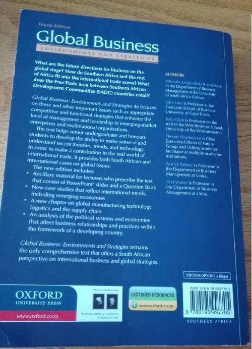 Authors: A. Aregbeshola, T. Oosthuizen, J. Luiz, K. Ojah, P. Venter and P. Palmer