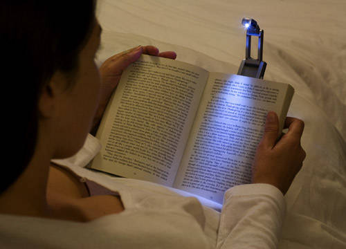 Compact book light that clips onto books and magazines and supplies enough light for night time read.