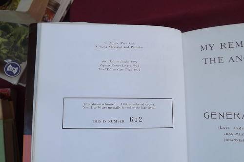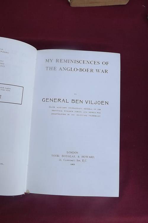 Book-My Reminiscences of The Anglo-Boer War by General Ben Viljoen.Book no 602 of 1000 published