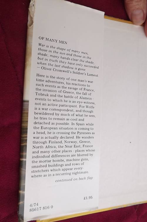 Book- Of Many Men by JAMES ALDRIDGE.One man's wartime adventures.Good condition.