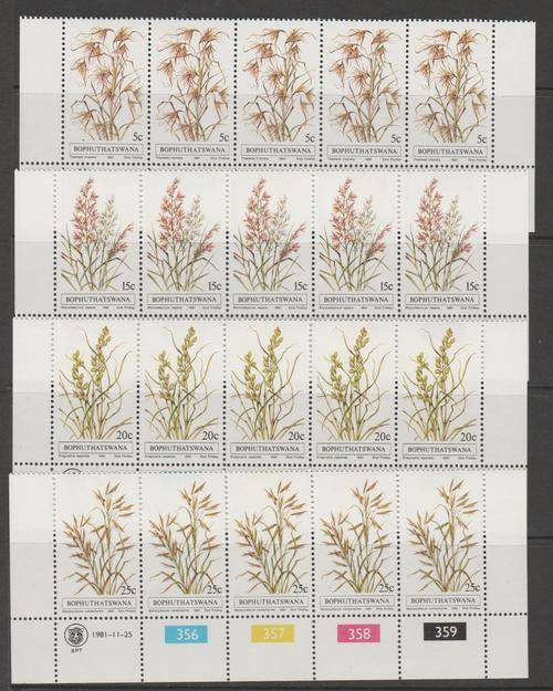 Bop 1981 S.A.C.C. 80-83 "Indigenous Grasses" Set of 4 Control Blocks M.N.H.