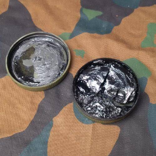 Here we have on auction a tub of original Border-war period genuine black-is-beautiful camo cream as used by all SADF troops during the SWA/ Angola border war - and especially white officers and men attached to units in the bush fighting alongside black troops ......or by SA Special Forces (Recce) and 32 Bn white soldiers during missions deep inside Angola.