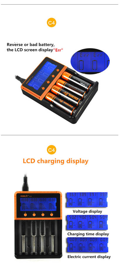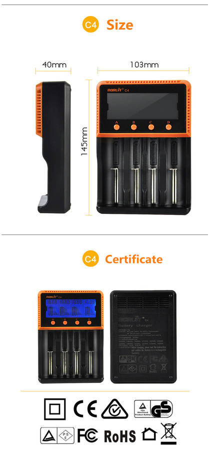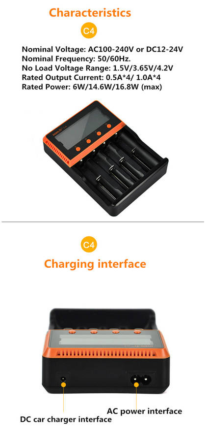 The C4 is able to automatically identify Li-ion, Ni-MH and Ni-Cd rechargeable batteries and apply an appropriate charging mode.