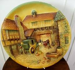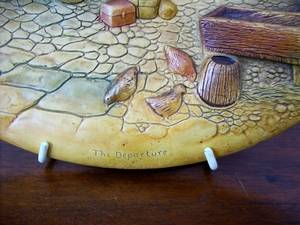 Bossons wall plaque - The Departure' Please note this plate is in good condition but has minor paint wear on the very edge. A superb item. These plates are difficult to find in lst class condition and this one is pretty close to it. Dia:350mm. Marked on back: Hand painted plaque by W.H. Bossons Ltd. Congleton. Cheshire. Made in England. World copyright reserved. l959. Cannot make out signature. 2/E/B