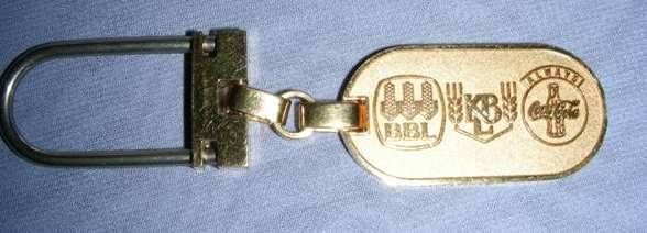 Gold Plated key ring. Has BBL, KBL and Always Coca Cola on one side. I believe these stand for Botswana Breweries and Kgalagadi Breweries also in Botswana.