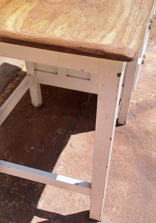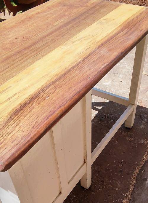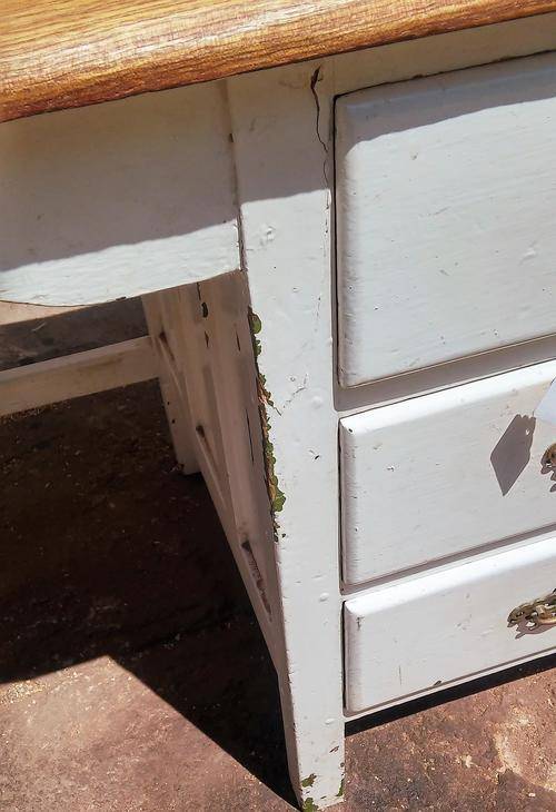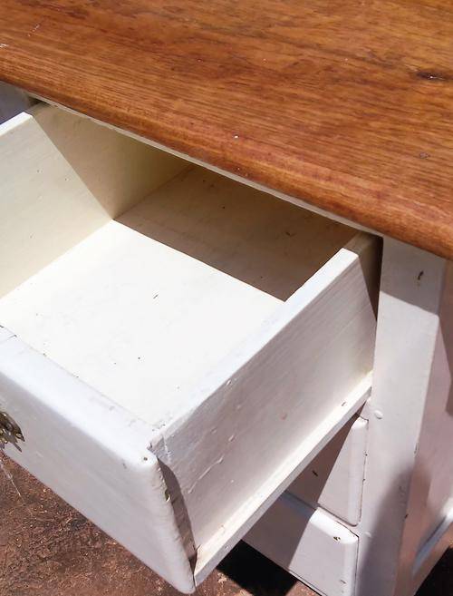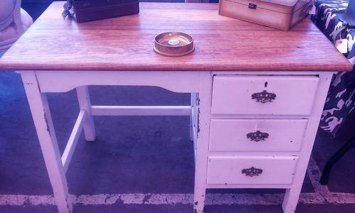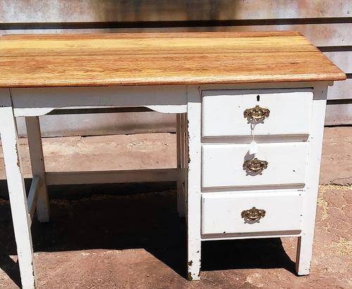 BOTTOM PAINTED THREE DRAWER SMALL DESK. TOP NOT PAINTED.
