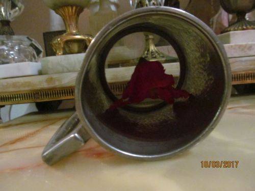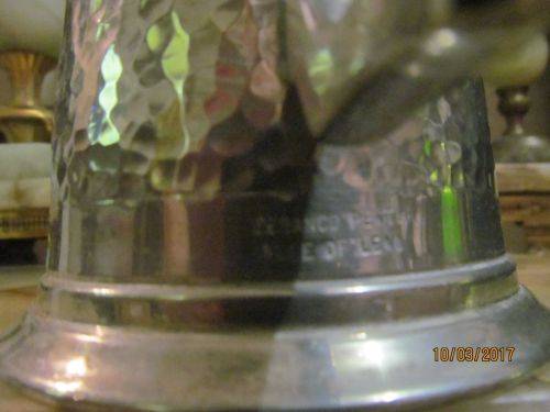 VINTAGE SERANCO PEWTER BEER TANKARD WITH GLASS BOTTOM -- BEATEN METAL PATTERN