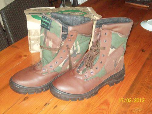 Size 13.Boots as used by protection forces. Tough, reliable boots which will also work well in the veld. Ideal for the hunter or outdoors man. Exellent comfort and protection for your feet in the wild.