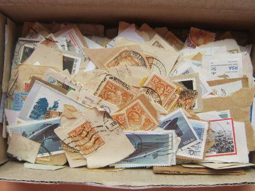 BOX WITH 100's OF STAMPS ON PAPER (UNCHECKED) - PLUS A FEW OFF PAPER
