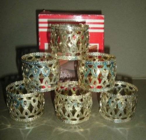 A BEAUTIFUL SET OF ( 6 ) SILVER PLATED NAPKIN RINGS IN ORIGINAL BOX UNUSED, diameter 40mm, IN GOOD CONDITION.
