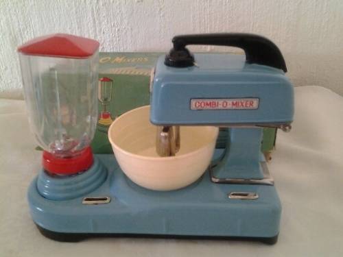 very nice collectors item boxed vintage childs play vintage battery operated blender item the box is a bit shabby and the blender is on top is a bit lose needs tlc I have not tested it so I can't say it works selling it as is but in good condition