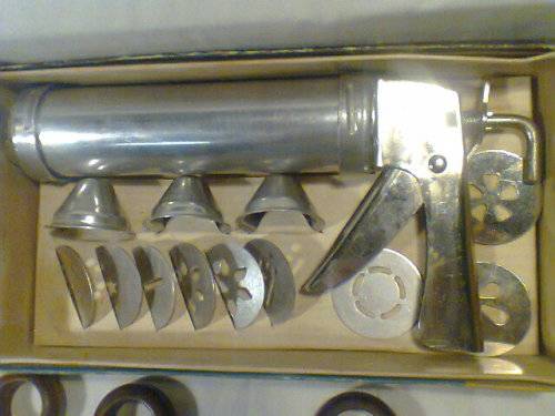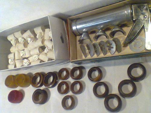 A real beautiful find from years gone by a Complete Boxed Cookie Gun + Serviette Rings some are hand made in 1950's starched for the Bride's Table.