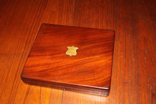 Set of twelve silver plated fish knives in a fine wooden box.  Maker's mark looks like M H & Co T, with a crown and EP at rightangles.