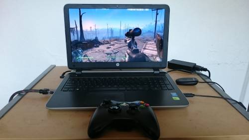 We connected this gaming laptop to Xbox controller and to HD TV via Hd port from laptop and tested every high end game we downloaded. Ran without no issues or lagging the Nvidia graphics card is super fast, with i7 processor, 8Gb ram to ease it through heavy game play and powerful Cooling Fan. Refer to pictures below. No scratches on screen or covers.
