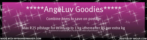 R65.00 Standard shipping applies to orders under R100.00, in most areas in South Africa. R35.00 Standard shipping applies to orders over R100.00. Some areas may attract a surcharge surcharge. This will be calculated at checkout if applicable.