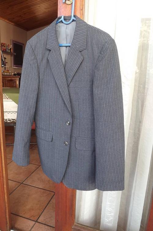 Boy's Trevira Polyester Viscose Dark Grey Pinstripe Smart Jacket by Chappies - Chest 84cm - back shoulder width 37cm - will match up with navy or grey pants for church or special occasion - good condition