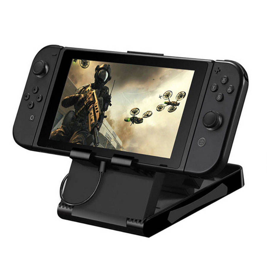 Features: This stand lets you plug in the cable and use the device on the stand Solve a Switch design issue: USBC Port is on the bottom of the switch Easily folds to fit in any bag or pocket. Make it easier to carry with you when travelling, and easy to store when not in use 4 angles adjustable height through 4 levels of slots to meet requirements of different heights. Enjoy the gaming time easier. This can make your hands not so tired There are nubs that the switch goes onto on the holder part so that it doesn't slide around on the stand Material: ABS Fit: For Nintendo Switch Game Console Note: Due to different producing batches, product details might be a little different. If you minding the difference, please buy it carefully. Please allow 13CM differs due to manual measurement. Due to the different display and different light, the picture may not reflect the actual color of the item. Thanks for your understanding. Packing Included: 1 x Bracket Stand for Nintendo Switch Game Console(Nintendo Switch not included)