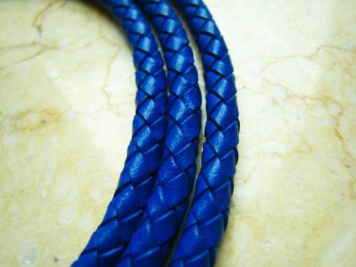 BRAIDED LEATHER CORD - ROYAL BLUE - ROUND - 6mm - SOLD PER METER