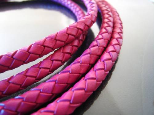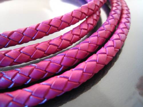 BRAIDED PU LEATHER CORD - CERISE PINK - ROUND - 7mm - SOLD PER METER