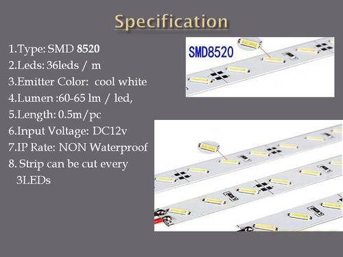 This listing sells 1x 500mm 20W 8520 pure Cool white Rigid strip