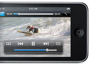 In control. While watching your video, tap the display to bring up the onscreen controls. You can play/pause, view by chapter, and adjust the volume. You can also use the new volume controls on the left side of iPod touch. Want to switch between widescreen and full screen? Simply tap the display twice. Sync and go. Need some entertainment for your next flight or road trip? With iTunes on your Mac or PC, you can sit at your computer and choose the movies and TV shows you want to sync to your iPod touch |