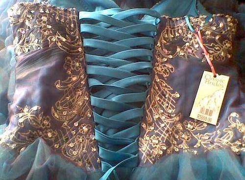 Photo below shows lace up back and price tag