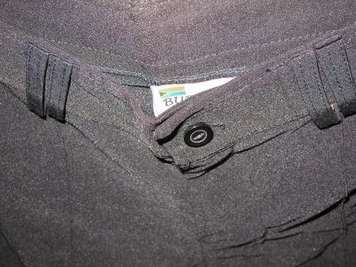 Brand New, unlined suit: zipped pants and tailored, three quarter sleeved buttoned jacket.