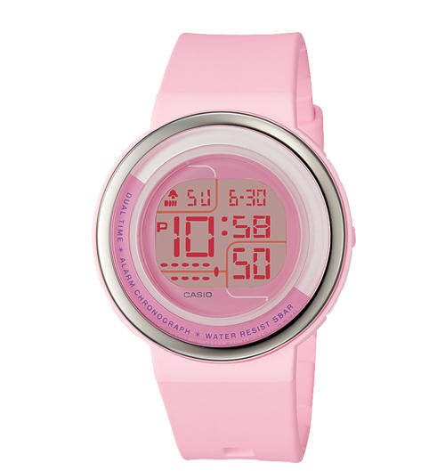 The colors and patterns are so cute and fashionable, that you'll want one in every color for every outfit. Large buttons for easy operation, dual time, 50-meter water resistant and 10-year battery life. Pink Resin Band with a Digital Dial Code.