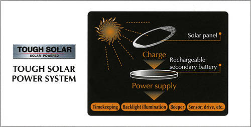 • Tough Solar with sporty design - Never needs a battery change !!!