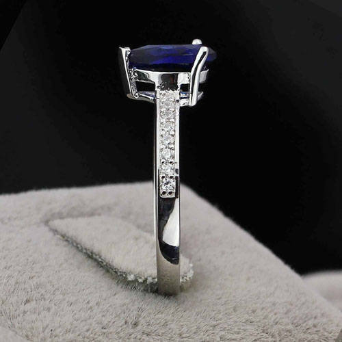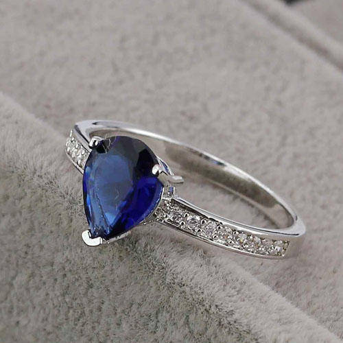 BRAND NEW Created Sapphire Pear Cut Ladies Ring. Size 9 / S