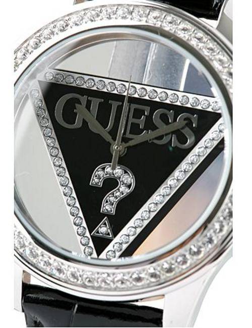 BRAND NEW Guess Ladies Special Edition 25th Anniversary Watch Black Leather Transparent Dial with stones