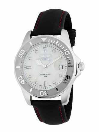 Get a beautiful Invicta Pro Diver Collection Swiss Made Movement, Mother of Pearl Dial, Flame Fusion Crystal, Black Snake Skin Strap 50M Water Resistant Men's Watch