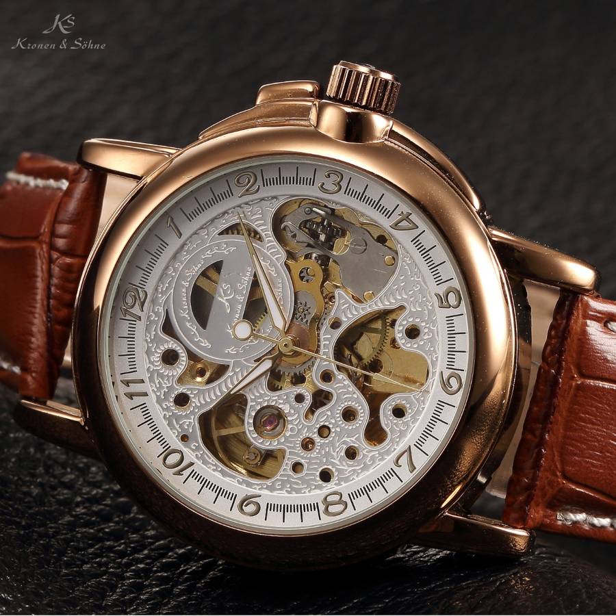 brand new!! KRONEN & SOHNE **ROSE GOLD** Warrior Automatic Mechanical Leather Watch