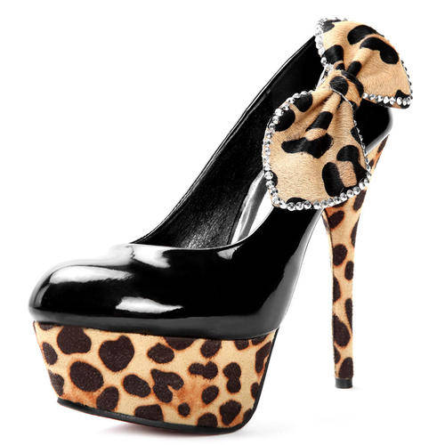 BRAND NEW - LADIES BLACK WITH LEOPARD BOW HIGH HEEL