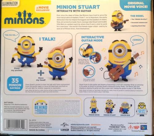 Original Minion Stuart interacts with guitar , 35 Minion sayings , original movie voice