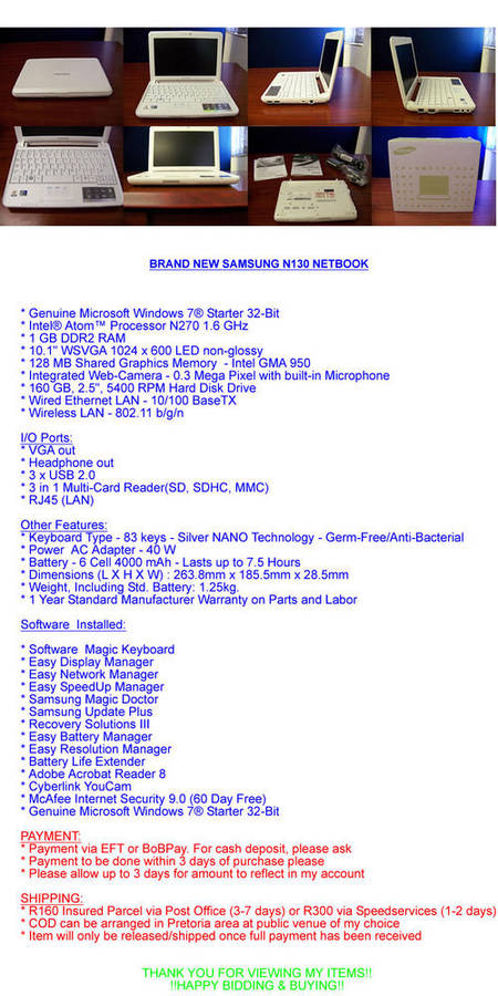 Brand New Samsung N130 Netbook!!! R1 Auction!!!