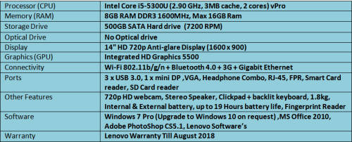Lenovo warranty Till August 2018 - For retail price and full specs click here